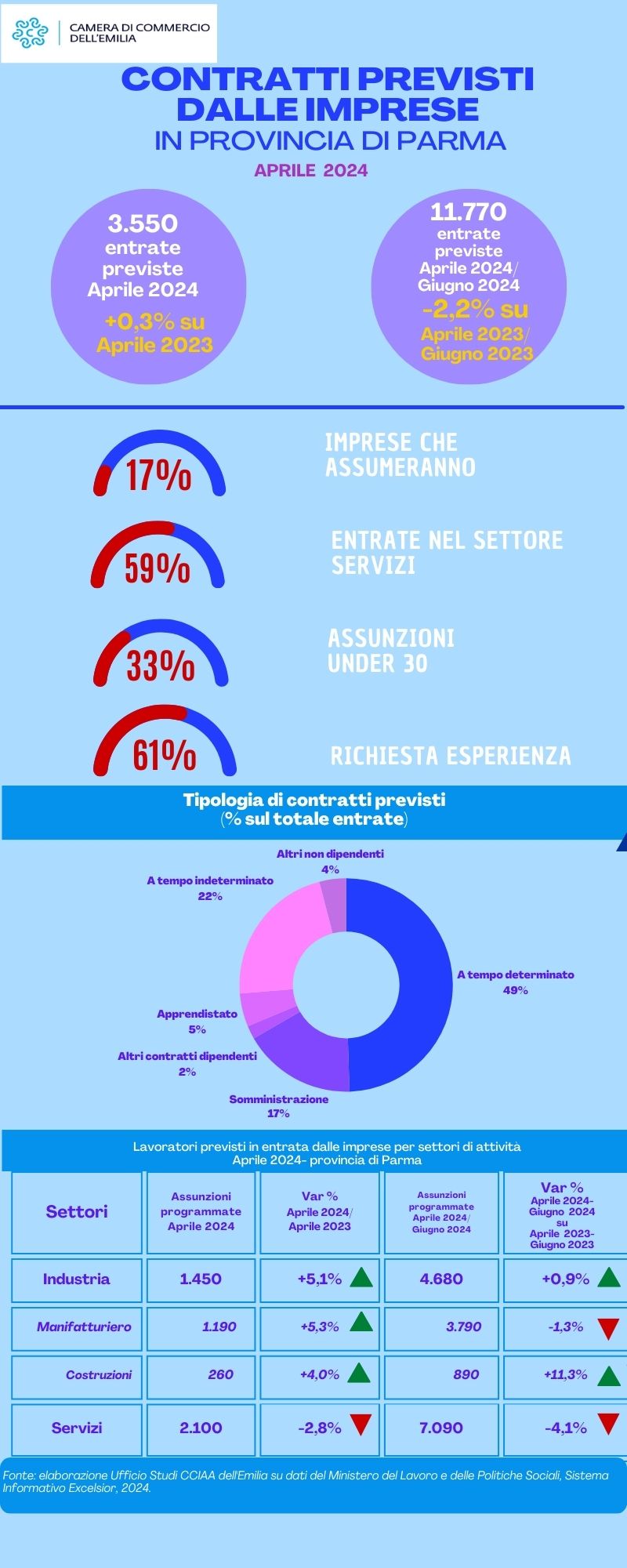 Le imprese che attiveranno nuovi contratti risultano il 17% sul totale, e la loro attenzione sarà rivolta ai giovani per il 33% dei nuovi contratti.