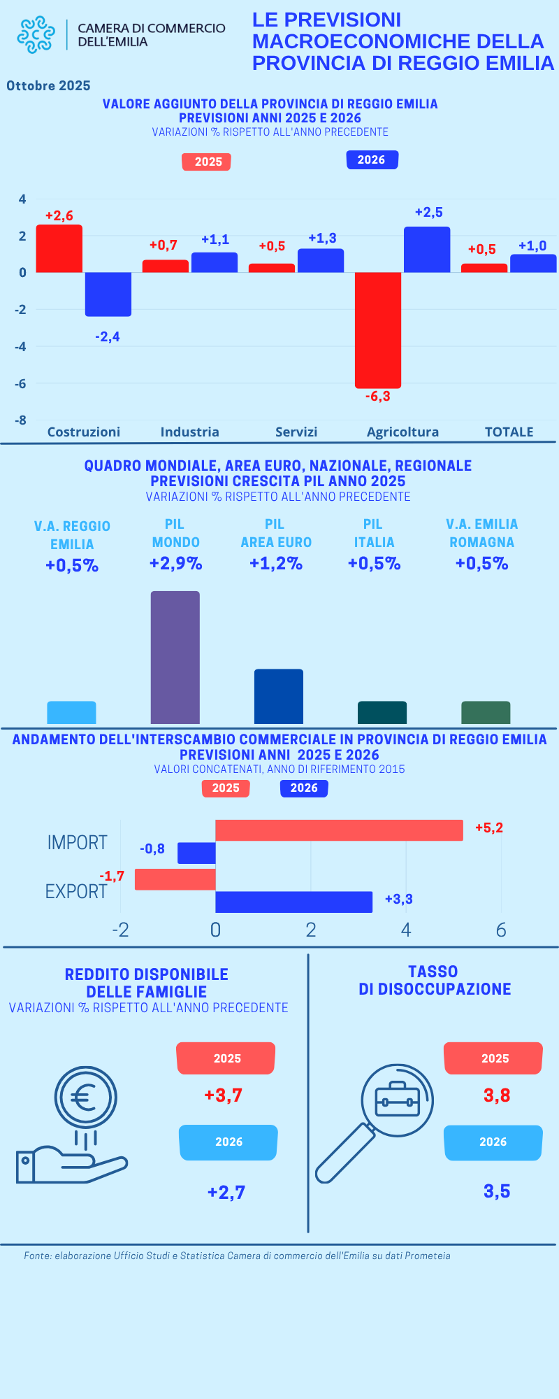Si abbassano leggermente le previsioni relative al Pil reggiano alla fine del 2025.