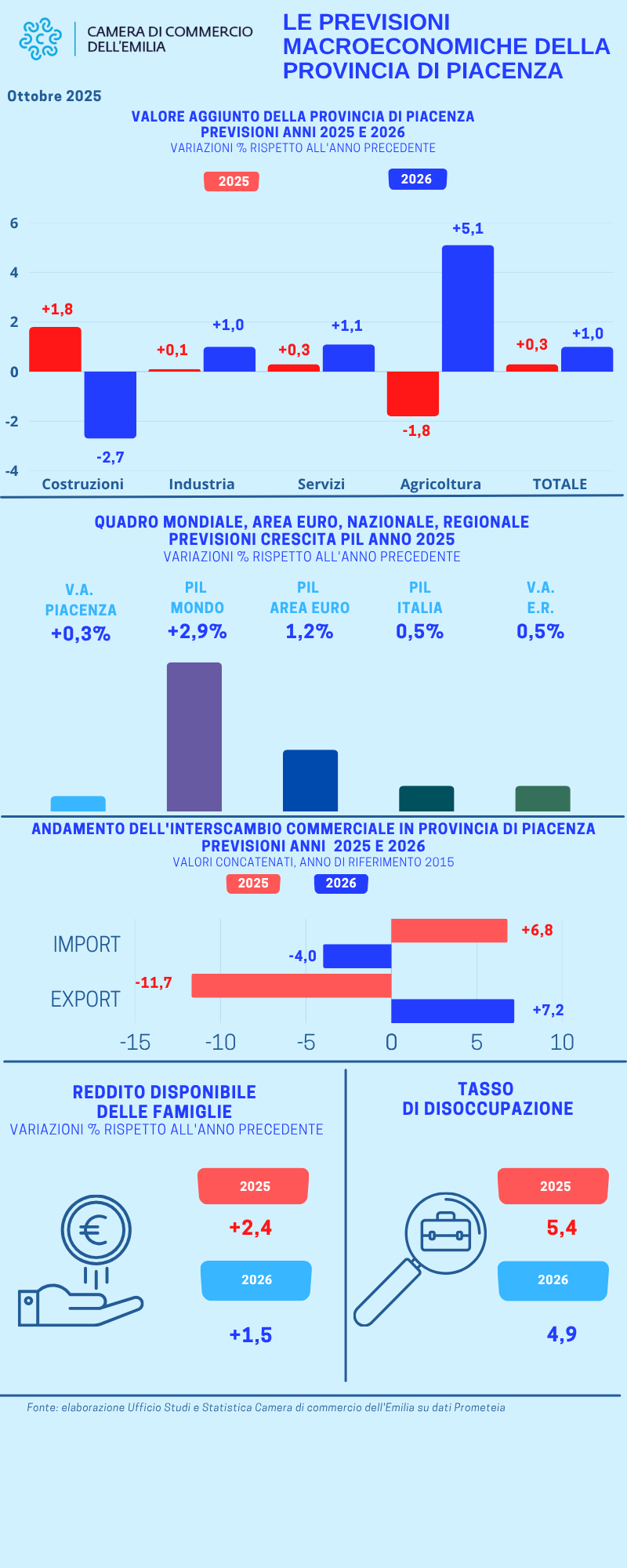 Si abbassano leggermente le previsioni relative al Pil piacentino alla fine del 2025.