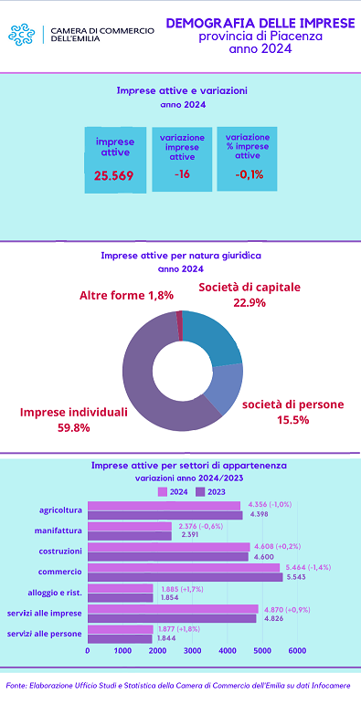 Le realtà piacentine si sono così attestate a 25.569 con una quota del 22,9% sul totale delle imprese attive che fanno riferimento alla Camera di Commercio dell’Emilia.