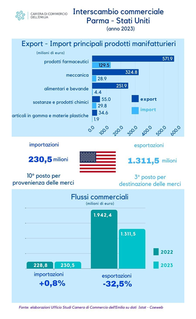 Continua ad aumentare la preoccupazione delle imprese parmensi in relazione all’evolversi delle politiche commerciali degli Stati Uniti, con la possibilità di nuovi dazi sulle importazioni europee – e in particolare sui prodotti agroalimentari, farmaceutici e meccanici – che andrebbero a colpire duramente l’export locale.
