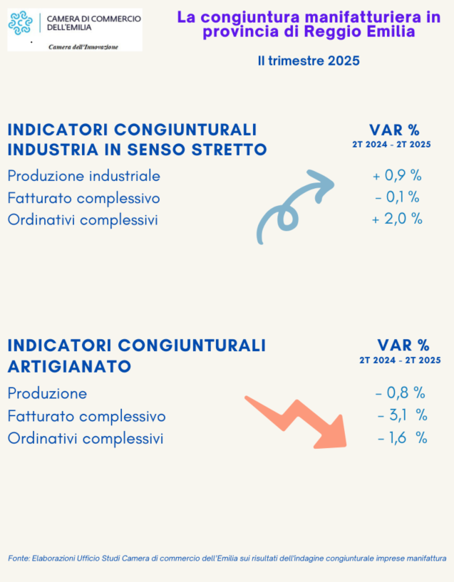 Inversione di tendenza, nel secondo trimestre 2025, per la produzione industriale reggiana. Dopo aver chiuso il periodo gennaio-marzo con una flessione del 3,2%, i volumi si sono decisamente rialzati, tanto che alla fine di giugno si è registrato un aumento dello 0,9% rispetto alla stessa data del 2024.