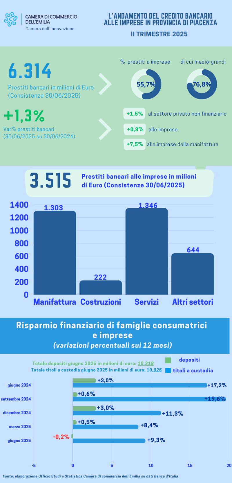Il totale del risparmio piacentino, rappresentato da depositi e titoli a custodia presso le banche, si è pertanto portato a 20,3 miliardi di euro alla fine del primo semestre 2025, migliorando così di 830 milioni il dato del giugno 2024.